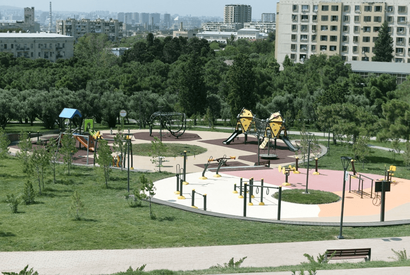 En los parques construidos hace varios años como «Ganjlik», «Nizami Ganjavi», el parque forestal de Yasamal, los parques Central e Invernal, y «Chemberekend», se han creado todas las condiciones para el descanso de residentes y visitantes, y se han instalado modernas instalaciones deportivas y de entretenimiento infantil.