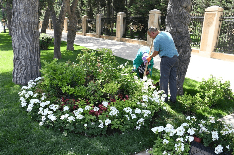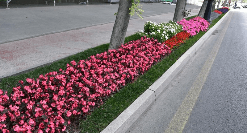Junto con esto, continúan los trabajos para hacer más verde y mejorar la capital. A lo largo de las calles y avenidas principales de la ciudad, en los parques existentes y jardines recreativos, se están plantando nuevos árboles, arbustos de hoja perenne y rosas de diferentes colores. Con las rosas se crean diversas composiciones. Se colocan macetas con rosas en los postes de luz y en balcones al borde de las carreteras.